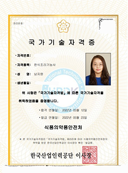 수강 전 부족한 요리실력 때문에 창피당하면 어떡하지 라는 생각이 많았습니다. 칼을 제대로 쥘 줄도 몰랐고, 식재료의 명칭도 몰랐습니다. “그래도 일단 해 보자” 라는 마음 하나로 시작했는데, 멘토님도 강사님들도 친절하게 설명해주고 꼼꼼하게 확인해 주셔서 한 달만에 자격증을 손에 쥐게 되어 감사할 따름입니다 :)